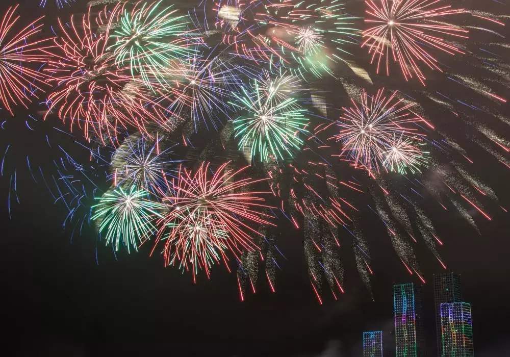 Гости и жители столицы увидят салют с двух точек: на набережной реки Есиль и на левобережье Астаны, возле торгового центра "Хан Шатыр". Салют будет длиться десять минут.