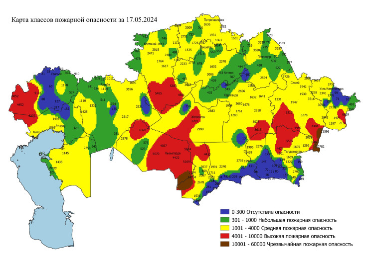 В пустынных районах Туркестанской области, в Уржарском районе области Абай сохраняется, на востоке области Жетысу ожидается чрезвычайная пожарная опасность.