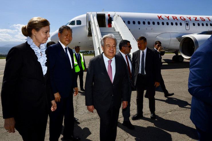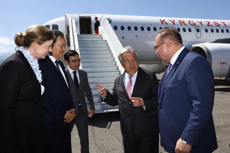 Генерального секретаря встретили первый заместитель министра иностранных дел Казахстана Акан Рахметуллин, постоянный представитель Казахстана при ООН Кайрат Умаров и постоянный координатор ООН в Казахстане Микаэла Фриберг-Стори.