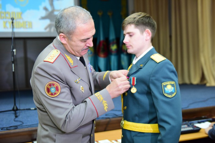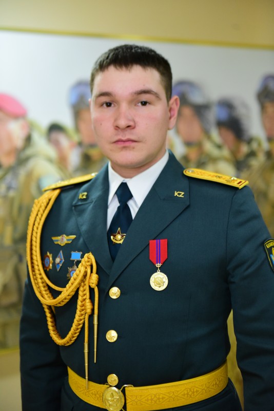 За образцовое выполнение воинского долга Указом Президента Республики Казахстан старший лейтенант Данияр Бектбаев награжден медалью "Жауынгерлік ерлiгi үшін".
