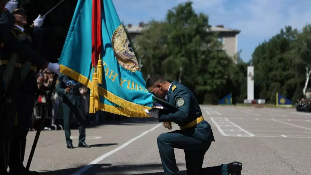 В торжественном мероприятии приняли участие председатель КНБ генерал-лейтенант Ермек Сагимбаев, ветераны и родители выпускников.