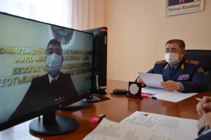 После министр направился в Северо-Казахстанскую область, где ознакомился с работой Центра оперативного управления, Центра кинологической службы и кавалерийского отделения.