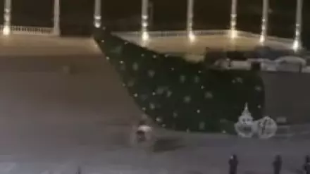 Конструкция не выдержала порывов ветра и рухнула на землю. Судя по кадрам, снятым жителями Актау, вокруг елки в этот момент людей не было. Никто не пострадал.
