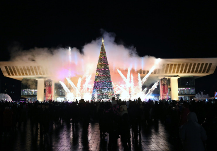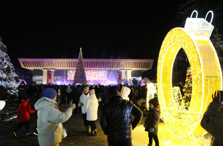В Алматы на площади Абая зажгли главную новогоднюю елку, передает корреспондент Tengrinews.kz.