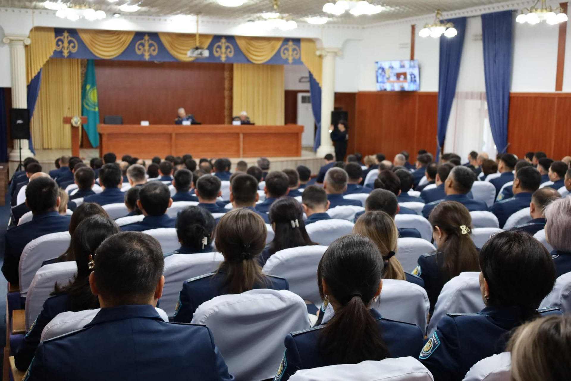 Нового руководителя личному составу представили заместитель министра внутренних дел Игорь Лепеха и аким Жамбылской области Ербол Карашукеев.