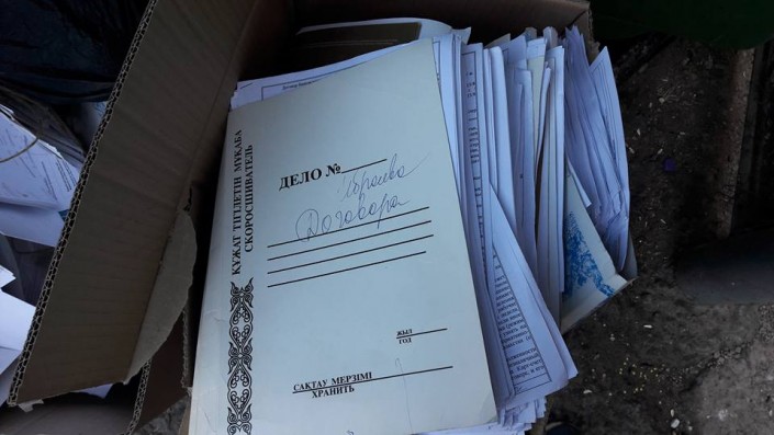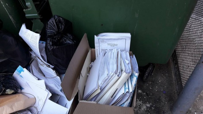 Житель Астаны Тимур Асылханов опубликовал в Facebook фотографии, на которых изображены папки с документами, оставленные у мусорных контейнеров. В комментарии, оставленном мужчиной, указывается, что речь идет об архивных документах клиентов банка.