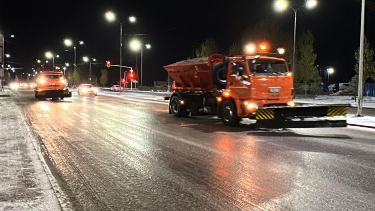 В акимате рассказали, что дороги, тротуары и улицы посыпают технической солью и другими реагентами.