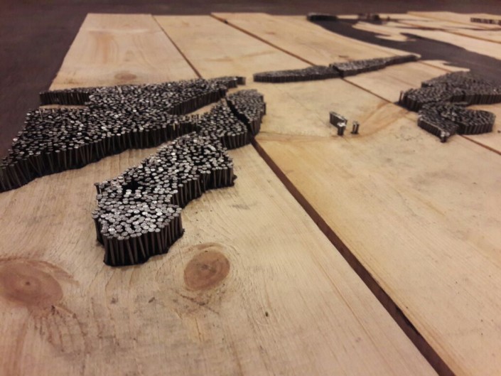 Как сообщил корреспонденту создатель картины Азамат Талгатбекулы, на создание изображения размером два на три метра и весом в 150 килограммов у него ушло 45 дней работы и около 56 тысяч металлических гвоздей.