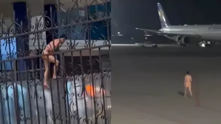 В соцсетях распространяется видео с голым мужчиной, который перелезает через металлическое ограждение. На следующих кадрах видно, что он уже находится на площадке рядом с самолетами. Судя по кадрам, это был аэропорт Алматы. Ролик сопровождается саундтреком из культового голливудского блокбастера "Терминатор".