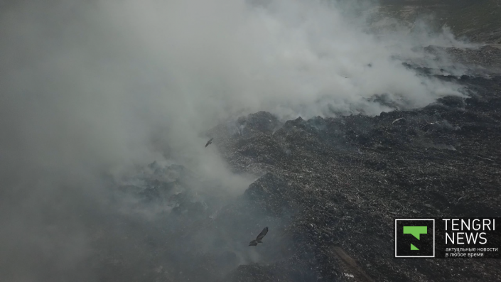 Мусорный полигон, который загорелся близ Алматы, сняли с высоты птичьего полета. Корреспонденты TengriTV побывали на месте и увидели все своими глазами.
