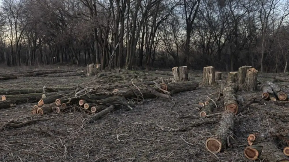 Видео с вырубленными карагачами появилось в соцсетях. На кадрах видно — молодые деревья с уже набухшими почками, распиленные и сложенные в штабеля для вывоза.
