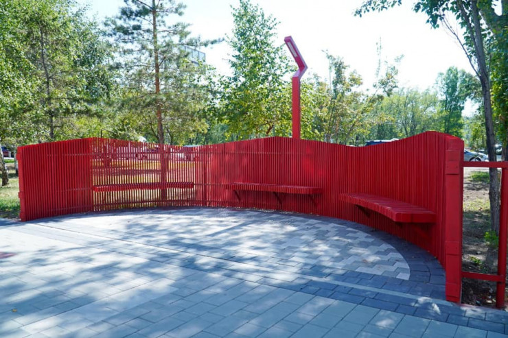 Общественное пространство "Архар" превратило переход под автомагистралью в точку притяжения жителей: появились арт-инсталляции, клумбы, пешеходные, велосипедные пути и баскетбольные площадки. Созданные объекты "Скамья-качели" формируют необходимую атмосферу и создают комфортное дополнение для прогуливающихся горожан.
