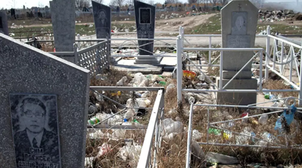 Завезенные бытовые отходы со стихийного полигона ветром разнесло по всему кладбищу Тараза. Об этом корреспонденту Tengrinews.kz сообщил местный житель Вячеслав Тен, который обнаружил мусорную свалку на территории кладбища. Горожане пришли на кладбище, чтобы почистить могилы своих родственников в канун празднования корейской пасхи - 5 апреля. "Сегодня утром я вместе с сыном пришел и ужаснулся, когда увидел, что вся могила и памятник моей тещи полностью засыпаны пластиковыми бутылками, полиэтиленовыми пакетами", - сообщил житель города Вячеслав Тен. По его словам, мусор на территорию кладбища завезли неизвестные на грузовых автомашинах. "Кроме этого, здесь видно, что отходы жизнедеятельности домашнего скота нередко сюда привозят и жители ближайшего частного сектора", - уточнил он. Как сообщил директор ТОО "Бюро ритуальных услуг" Кадырхан Абдуллаев, своими силами ликвидировать стихийную свалку он не может. "Мы в курсе этой ситуации. Уже неоднократно сами ловили водителей грузовых машин, которые заезжали на территорию кладбища, чтобы вывалить мусор. Полномочий, чтобы наказывать в административном порядке нарушителей, у нас нет. И своих средств не хватает, чтобы все это убрать", - пояснил Абдуллаев.