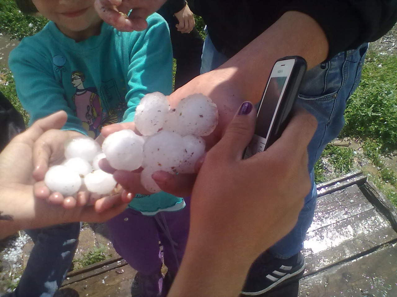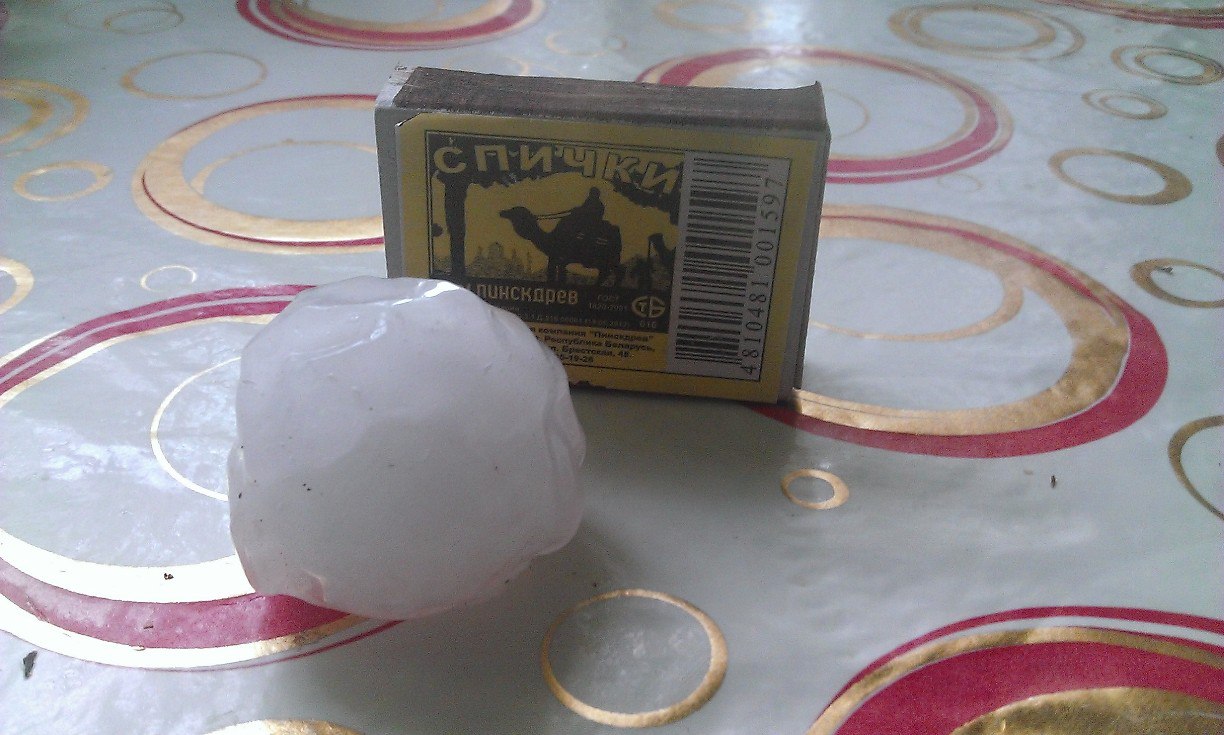 Диаметр выпавшего града, по словам жителей поселка Комсомольский, составил пять сантиметров. Жители рассказывают также, что первое, что они начали делать - фотографировать осадки в сравнении с куриным яйцом. Размеры почти не отличались.