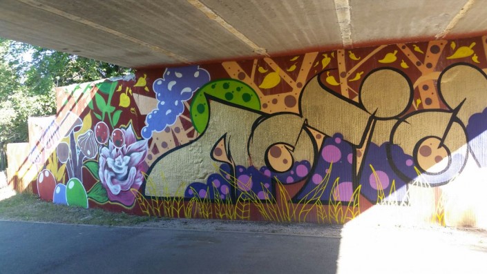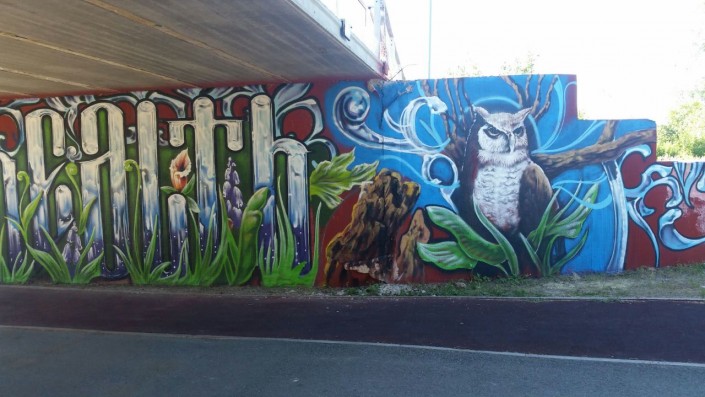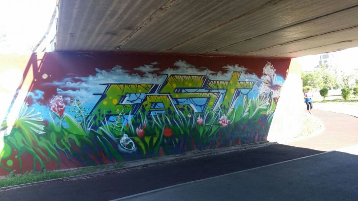 Данный фонд, при поддержке столичного акимата, управляет восемью из десяти парков. В одном из них - центральном - решили украсить необычным способом стены под мостами на лыжероллерной трассе. Ранее их постоянно портили неприглядными рисунками и надписями.