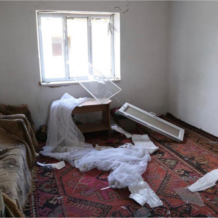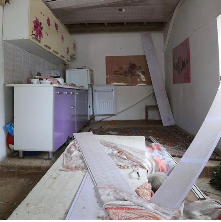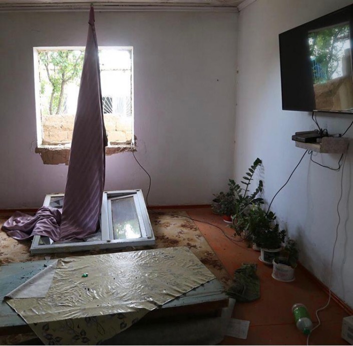"Только что мы приехали из 50-й школы. Нас встретили очень хорошо там, кормили и поили. Приходили люди перед нами, сфотографировали и снимали дом. Вот дом, разбиты окна. Сказали ничего не трогать. Сказали ждать, сами будем все убирать. Проломило балки крыши", - рассказал житель Арыси.