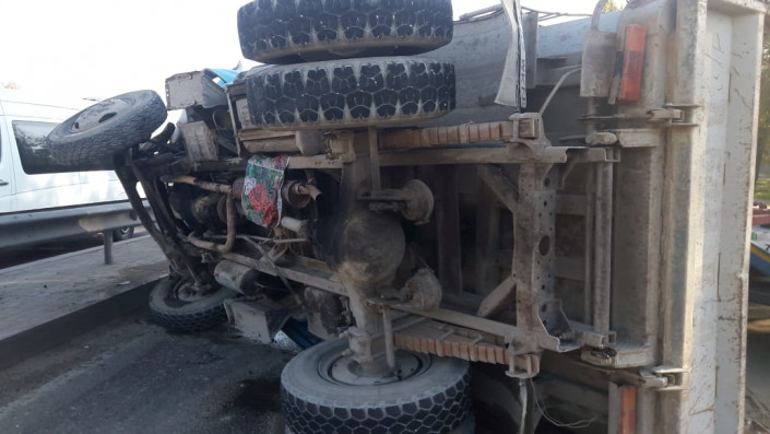 Грузовик опрокинулся на дороге в Алматы