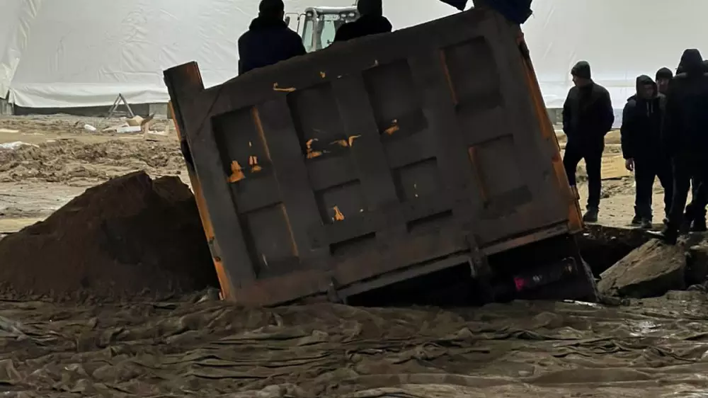 Грузовик провалился под землю в центре Алматы Фото очевидца