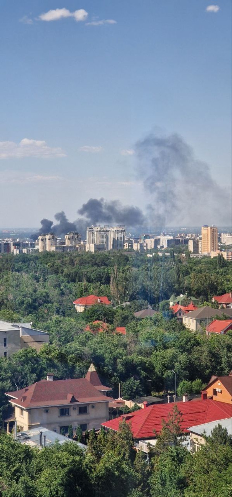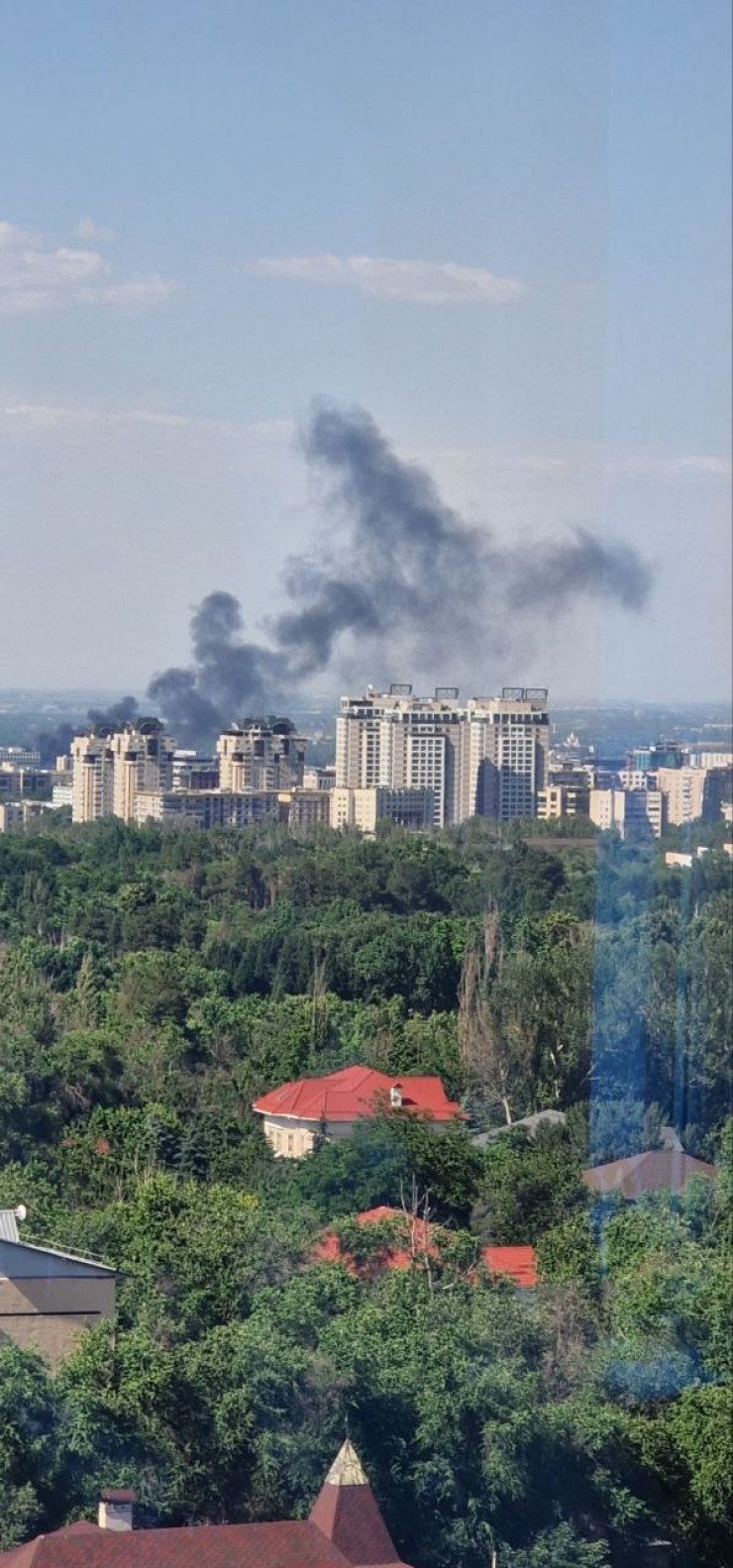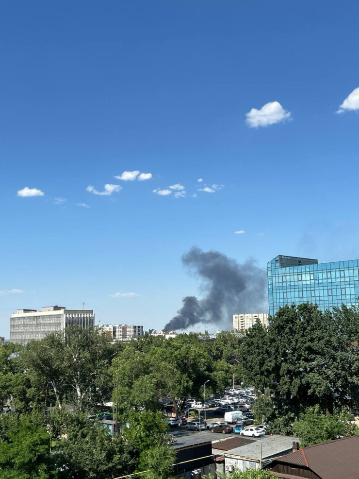 Читатели прислали фото и видео черного дыма, который виден из домов в старой части города в районе вокзала Алматы-2.