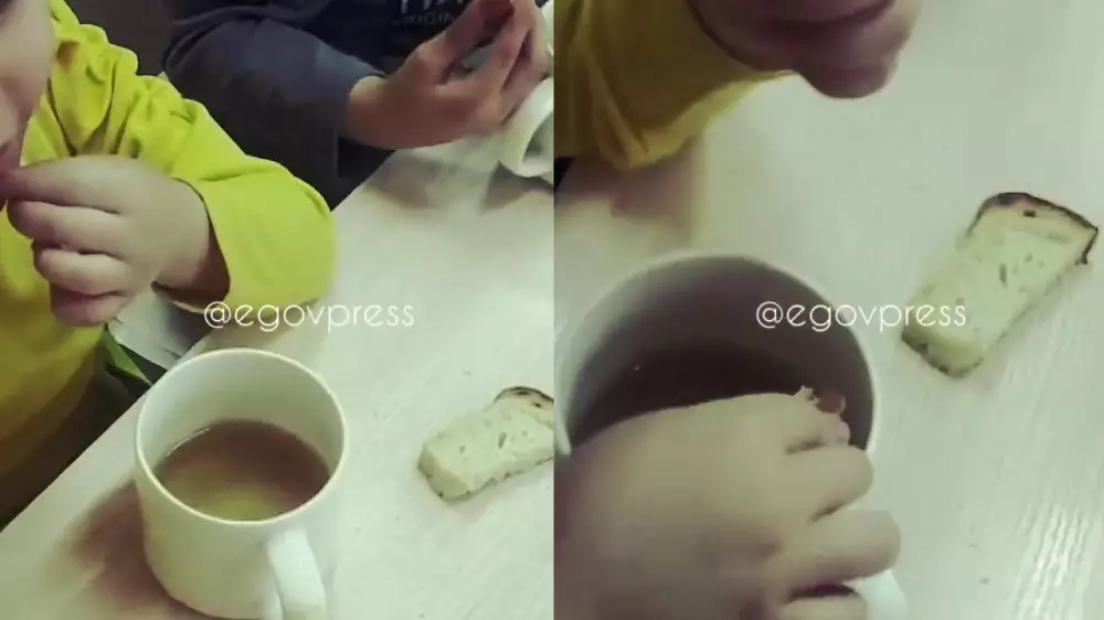 В социальных сетях появилось видео, на котором дети макают хлеб в чай. Автор ролика сообщил, что кадры сняты в детском саду №164.