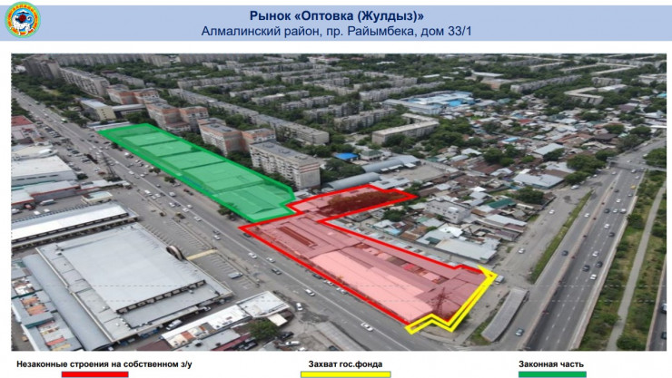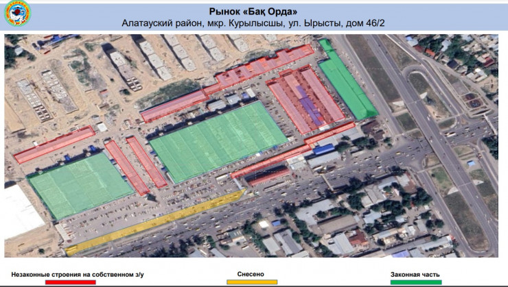 Сообщается, что площадь незаконного строительства на территории алматинских рынков составила порядка 350 тысяч квадратных метров.