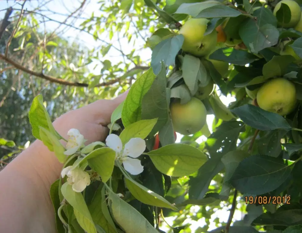 Жительница города Шемонаиха, расположенного в 130 километрах от Усть-Каменогорска, обнаружила в своем огороде цветущую яблоню, сообщает YK-news.kz. По словам женщины, вместе с цветами на ветках зреют наливные яблоки. Не по сезону ведут себя и другие представители флоры. Недавно еще одна из жительниц Усть-Каменогорска обнаружила на Комсомольском острове цветущий шиповник. Однако, по словам биологов, ничего удивительного в повторном цветении растений нет. "Вторичное цветение не бывает массовым. Распускаются лишь единичные особи. Это, конечно, аномалия, но вполне объяснимая. Этому процессу способствует резкое изменение погодных условий: жара - холод - снова жара. Растения порой реагируют на это так, словно уже состоялась зимняя спячка. У нас как раз в середине лета, в июле, было холодно. А в августе опять потеплело. Тут сказалась именно ритмика температур, растения восприняли это как смену времен года", - пояснил директор учебно-исследовательского экобиоцентра Анатолий Цыганов.