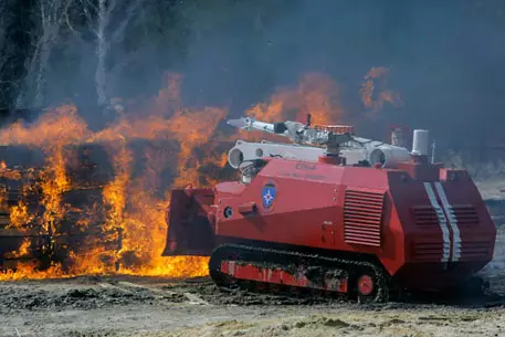Кроме того, в Саров привезли два мобильных роботизированных комплекса "ЕЛЬ-4" и "ЕЛЬ-10". Они предназначены для разведки и мониторинга, пожаротушения в условиях техногенных аварий, а также для разбора завалов для доступа в зону горения. При соответствующем переоснащении они могут тушить огонь с использованием порошков и сжиженных газов.