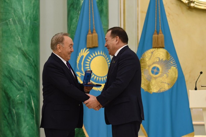 Орденами "Барыс" I степени награждены ветеран труда из Астаны Жанибек Карибжанов и председатель правления АО "НК КТЖ" Сауат Мынбаев.