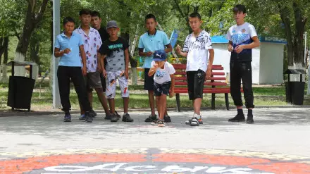 Поле для национальной игры за свои средства нарисовал художник и муралист Еркегали Имангали. Размер игрового поля специально рассчитан на детей подросткового возраста.