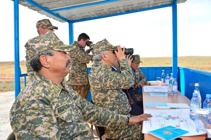 Министр обороны РК Имангали Тасмагамбетов присутствовал на специальных учениях "Жәрдем-2016", которые проходят на полигоне Сарышаган, сообщает Tengrinews.kz со ссылкой на пресс-службу ведомства.