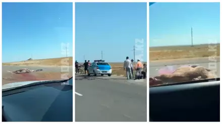 Водитель автомобиля Infiniti совершил наезд на верблюда по дороге в аэропорт Актау, животное погибло на месте аварии, двое пострадавших были доставлены в областную больницу, передает Tengrinews.kz со ссылкой на "Ладу".