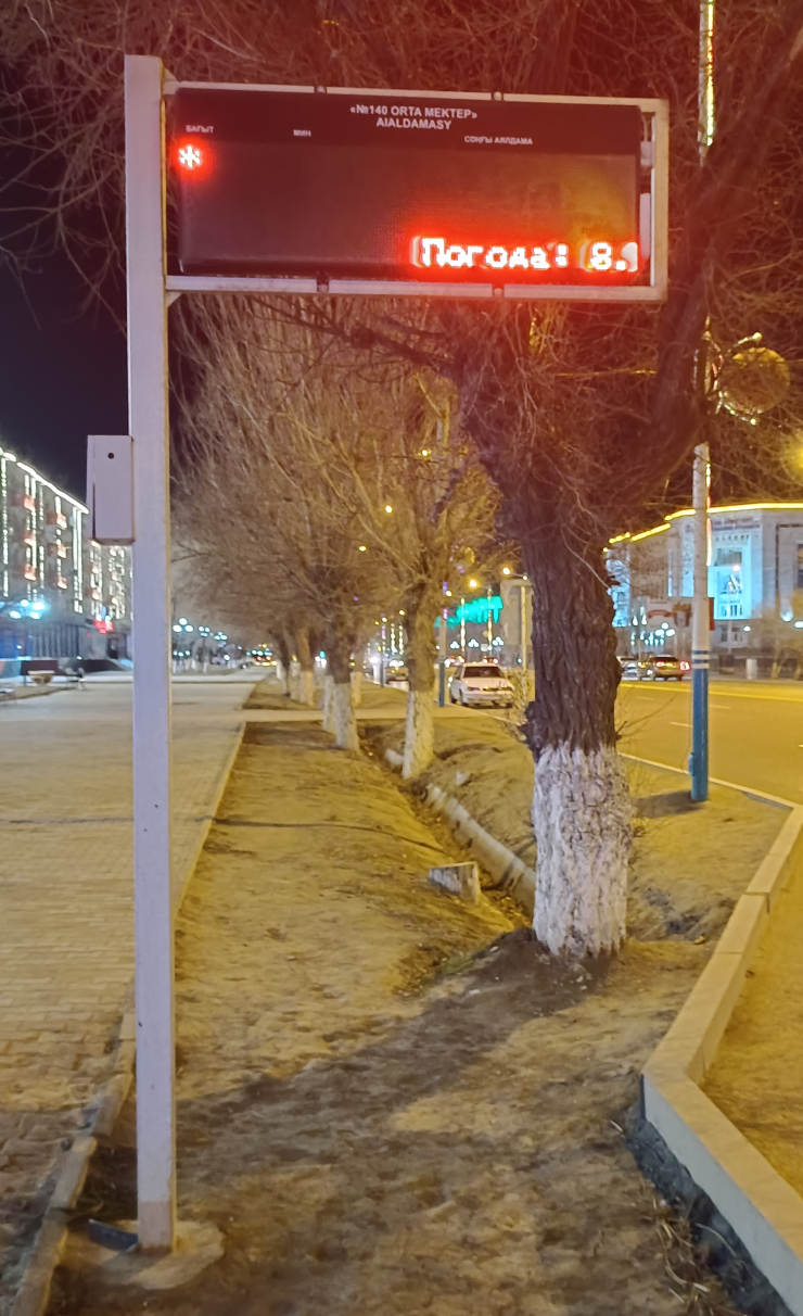 Информационные электронные таблички, которые должны давать информацию о движении внутригородских маршрутов в областном центре, пока не подключены. На них отражается только информация о прогнозе погоды, передает корреспондент Tengrinews.kz.