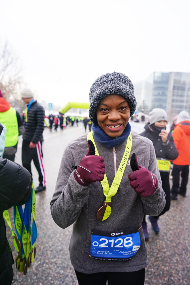 В стартовом городке у бизнес-центра "Нурлы Тау" уже можно было увидеть обновленный логотип Almaty Marathon. Он, вдохновленный эстетикой беговых дорожек, символизирует объединение людей всех возрастов, полов, уровней подготовки и физических возможностей. Именно такое единение стало особенно ярко видно на зимнем забеге. В этом году на старт вышли бегуны из 21 страны. Самому юному участнику было 10 лет, а самому возрастному – 84 года.