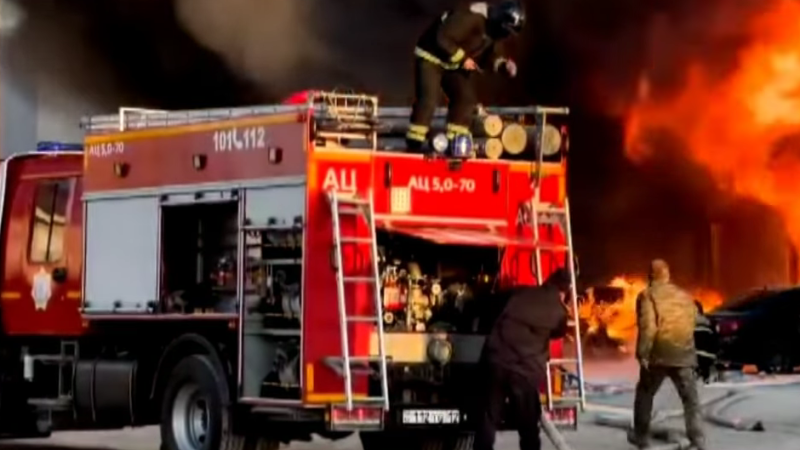 Два иностранца получили сильные ожоги при пожаре на СТО в Актау Кадры из видео