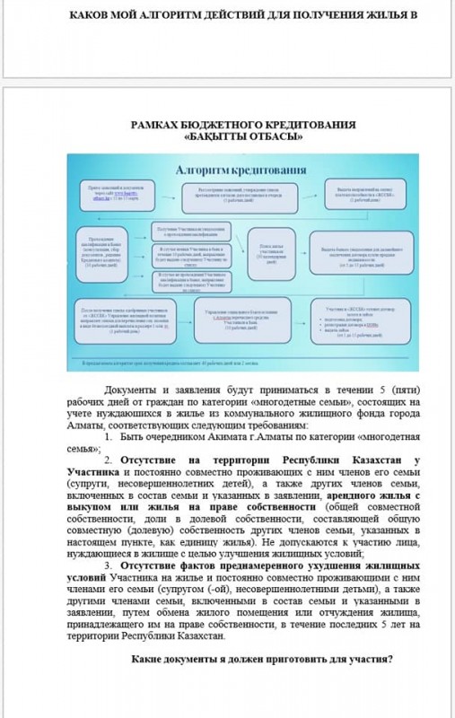 Заместитель председателя правления "Центра развития Алматы" Жанна Асанова опубликовала на своей странице в Facebook подробный алгоритм получения ипотечных кредитов под 2 процента годовых для многодетных по программе "Бақытты отбасы", передает Tengrinews.kz.