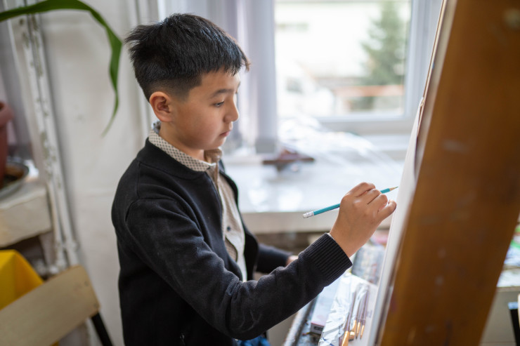 Продолжение фестиваля прошло в Казахской национальной академии искусств имени Жургенова, где юные художники осваивали мозаичные и акриловые техники на мастер-классах Бауыржана Байділды и Мукана Сулейменова.