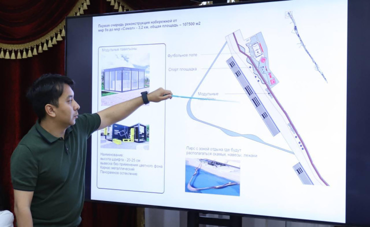На совещании известные архитекторы из Беларуси, Турции и Казахстана представили свои специальные проекты по благоустройству, модернизации и развитию морского побережья Актау. Представители проектных компаний планируют построить на участке от микрорайона Самал до Солдатского пляжа современный парк, спортивные площадки, павильоны в едином стиле, сухой фонтан, открытый общественный бассейн и пирс. Кроме того, они предложили установить трехъярусный памятник Әуенді домбыра и стелу Парус, которые помогут выделиться Актау, ставшему центром притяжения для туристов.