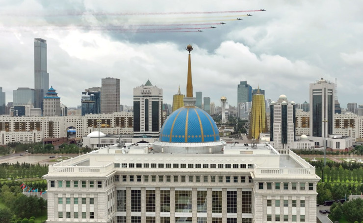 Президент Касым-Жомарт Токаев лично встретил кортеж председателя КНР Си Цзиньпина. В честь высокого гостя перед президентским дворцом пролетели истребители Сил воздушной обороны Республики Казахстан, оставив за собой красный и желтый след – цвета флага Китая.