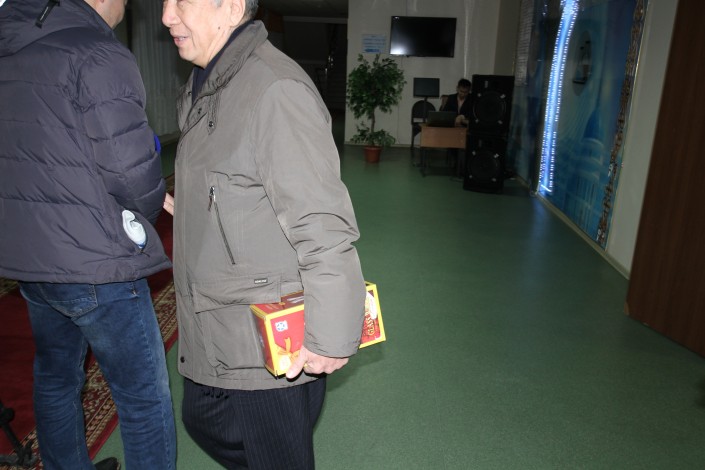 Итальянские наблюдатели пришли в восторг от казахстанской идеи дарить подарки на выборах Молодому человеку на избирательном участке дарят презент. Фото ©Tengrinews.kz