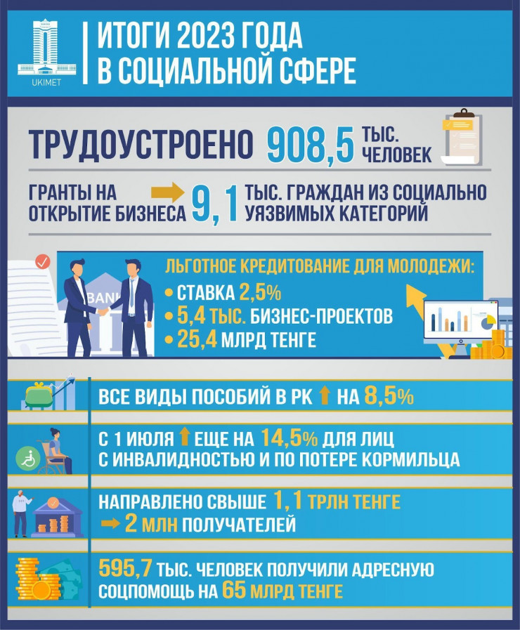 "Текущий объем социальных гарантий должен не сокращаться, а перераспределяться в пользу действительно нуждающихся в них граждан. Государство будет помогать тем, кто без этого не может обойтись. Основой всего должна стать упреждающая социальная политика, направленная в большей мере не на выплату поддерживающих пособий, а на создание продуктивных рабочих мест. Это позволит обеспечить реализацию принципа “всеобщей занятости", - отметил Касым-Жомарт Токаев на расширенном совещании по вопросам социально-экономического развития страны весной этого года.