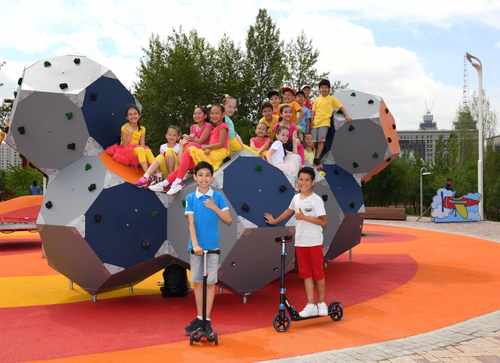 Парк "Жетысу" представляет собой 4 функциональные зоны, встречает входной аркой, символизирующей семь рек Жетысу и горы области, в центре которых - величественный пик Хан-Тенгри.