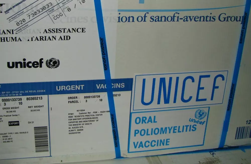 ЮНИСЕФ поставил в республику на безвозмездной основе 2 093 000 доз тривалентной вакцины. Для дополнительной иммунизации в Южно-Казахстанской области ЮНИСЕФ поставил дополнительно 430 000 доз моновалентной вакцины.