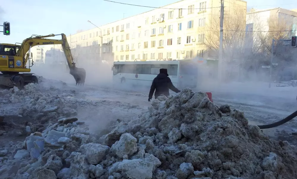 Из-за аварии часть домов осталась без холодной воды в Астане, передает корреспондент Tengrinews.kz. Как отмечает пресс-служба ГКП "Астана су арнасы", сообщение о порыве водопровода по улице Сейфуллина, 30 поступило сегодня в 06.00 часов. В связи этим, в ряде домов, расположенных по улице Сейфуллина и проспекту Победы, будет отключена холодная вода. "Локализовать порыв планируется до 18.00 часов", - говорится в сообщении. "Здесь сейчас работает 14 единиц тяжелой техники, около 35 человек задействовано в устранении аварии. Водоснабжение будет везде, сейчас пока закрыли до определения, но вода будет в домах", - сообщил журналистам на месте происшествия начальник аварийной службы "Астана су арнасы" Ержан Шарипов. При этом он предположил, что порыв произошел из-за суровых погодных условий. "Порыв произошел, видимо, из-за перепада температуры", - сказал он.