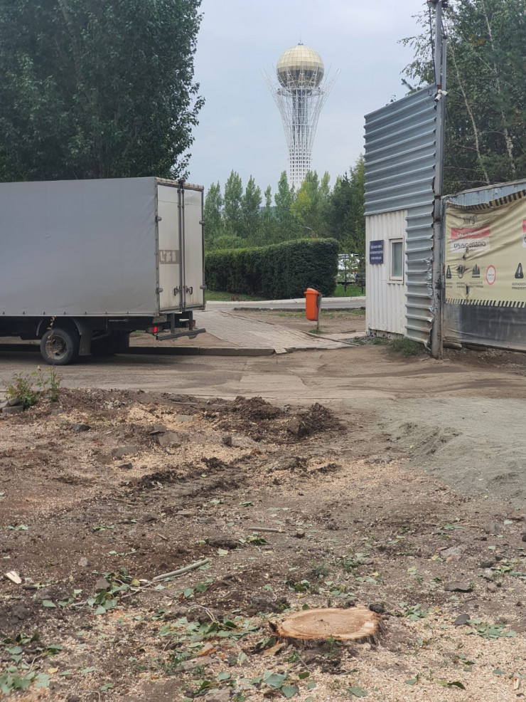 В редакцию обратился урбанист Улыбек Киманов, который с возмущением заявил, что часть деревьев на участке недалеко от его дома срубили под корень, другую часть обрезали, оставив голые стволы. По его словам, десятки жильцов квартир жилого комплекса "Арайлым" пожаловались на срубку деревьев в районе.