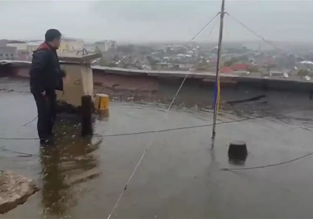 Они-то и выяснили, что ливень в подъезде произошел из-за того, что работники частной компании при установке антенны закрыли пенопластом сток для дождевой воды. "Оказалось, что представители частной компании договорились с домкомом об установке антенны на крыше дома. Но из-за установки сток забился пенопластом. Поэтому когда на улице пошел дождь, вся вода полилась в подъезд. Наши сотрудники прочистили сток, чтобы в случае дождя вновь не полилась вода. Но частная компания обещала в течение 2 дней все исправить. Мы держим на контроле ситуацию", - рассказал аким Аль-фарабийского района Шымкента Бауыржан Калжанов.