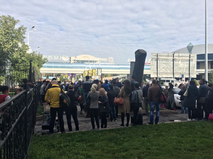 По словам очевидцев, сотрудники аэропорта попросили всех пассажиров выйти за шлагбаум.