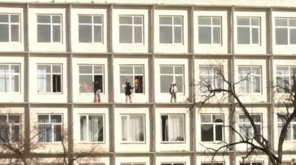В Актау учительница городской школы №5 уволена за то, ее ученики мыли окна, стоя на карнизе третьего этажа без всякой страховки. Об этом корреспонденту Tengrinews.kz сообщил директор школы Аскар Досов.