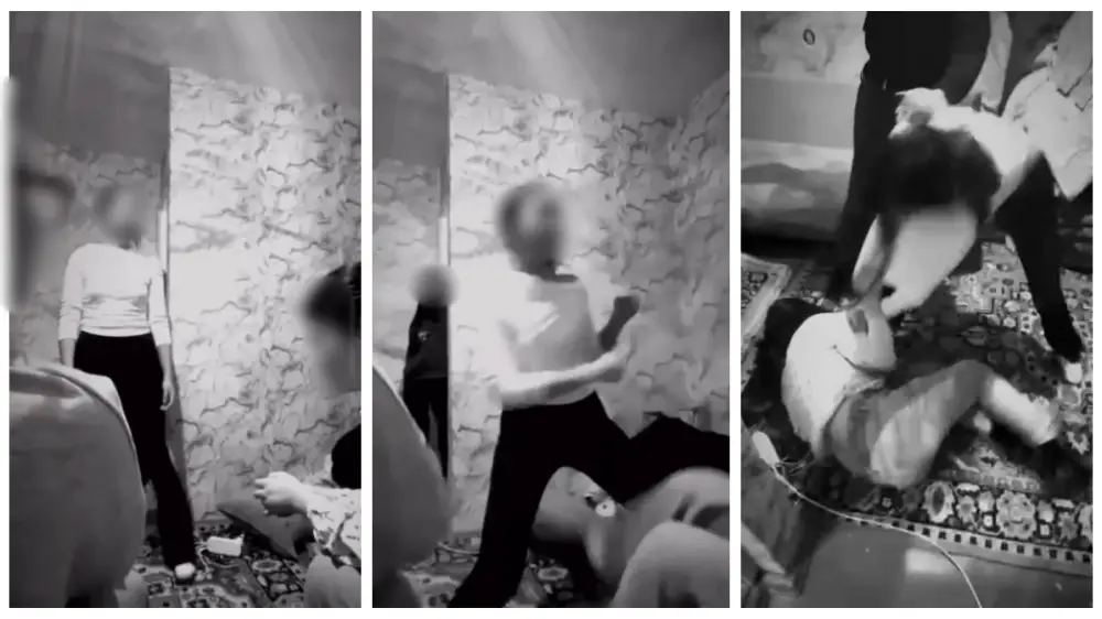На кадрах видно, как одна девушка, используя бойцовские приемы, бьет руками, а затем ногами по лицу другую, сидящую на диване. В комнате, где происходит избиение, находятся еще несколько их сверстниц, которые наблюдают за происходящим, и только одна предпринимает слабые попытки остановить рассвирепевшую подругу.