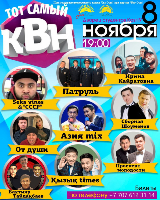 Известные казахстанские КВНщики соберутся в Алматы 8 ноября на сцене Дворца студентов, передает Tengrinews.kz.