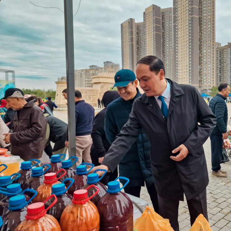Аким Жамбылской области Ербол Карашукеев посетил ярмарку, ознакомился с ассортиментом и стоимостью товаров, поговорил с покупателями и продавцами.